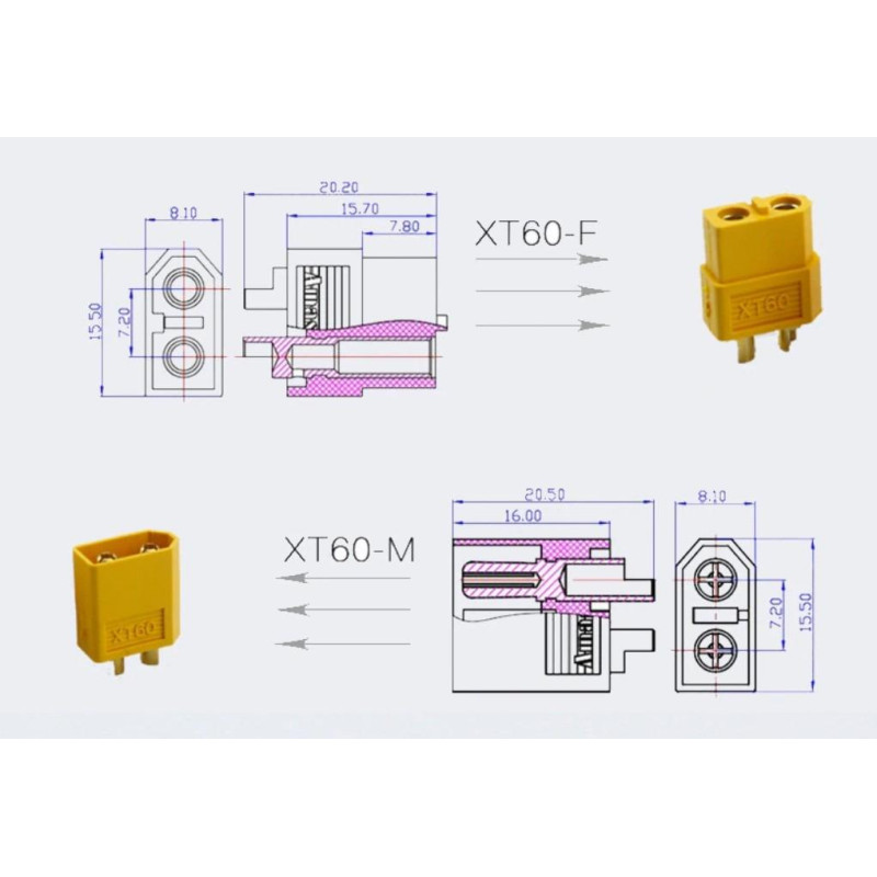 Univerzální napájecí konektor XT60 samice+samec, 2-pólový včetně vodičů.