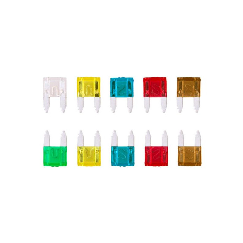 ► Sada 10 kusov nožových poistiek mini, pre použitie v automobiloch (max. 24V)