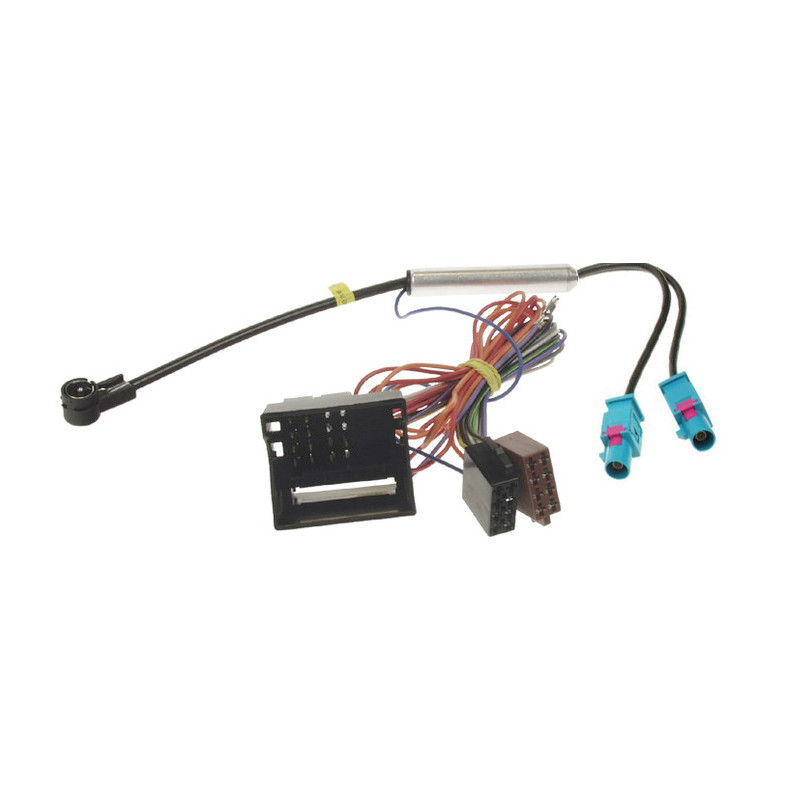 Propojovací konektor, který vám umožní připojit rádio s ISO konektorem do vozu Audi, Opel, Seat, Škoda, VW vyrobené mezi roky 2004-2012 varianta MOST konektoru v kombinaci s anténním separátorem, který je upevněn v napájecí části ISO konektoru.