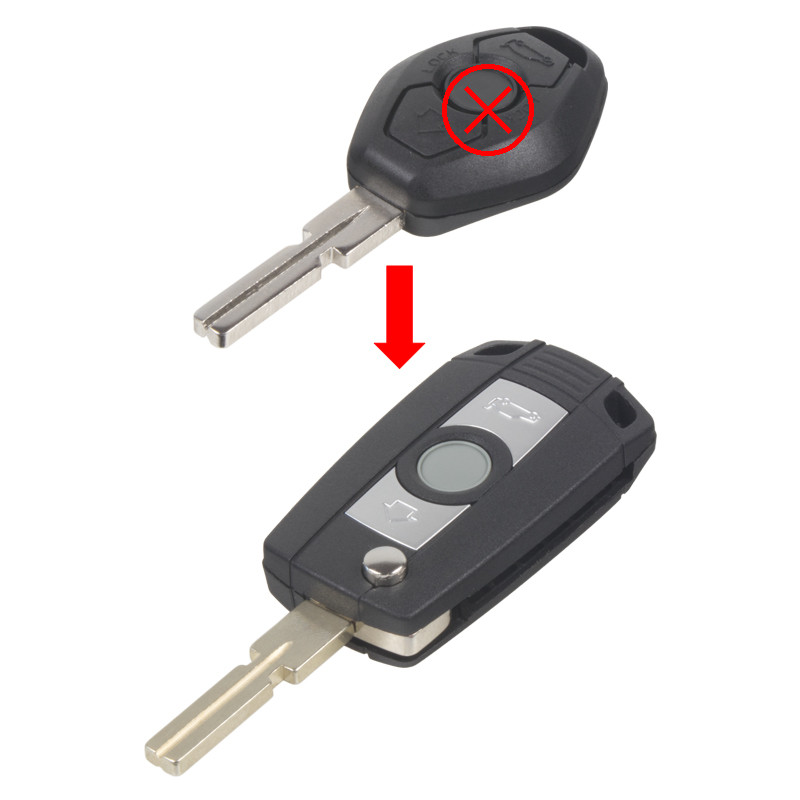 Náhradní obal vystřelovacího klíče pro vozy BMW s 3-tlačítkovým nevystřelovacím klíčem(bez elektroniky a čipu imobilizéru). Slouží pro změnu ze staršího nevystřelovacího klíče na novější verzi s vystřelovacím klíčem. o vystřelovacího klíče je nutno vložit z původního klíče elektroniku dálkového ovládání a čip imobilizéru (transpondér), planžetu klíče je třeba nechat vyfrézovat podle tvaru originálního klíče. Planžeta HU58.