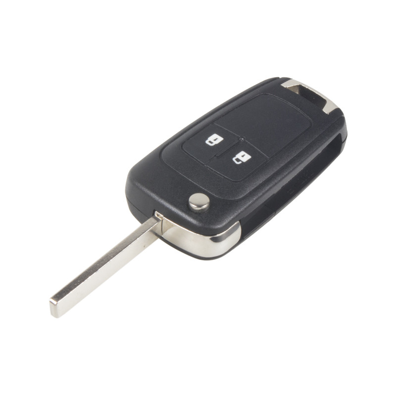 Náhradní obal vystřelovacího klíče pro vozy Opel s 2-tlačítkovým ovladačem (bez elektroniky a čipu imobilizéru). Do klíče je nutno vložit z původního klíče elektroniku dálkového ovládání a čip imobilizéru (transpondér), planžetu klíče je třeba nechat vyfrézovat podle tvaru originálního klíče.
