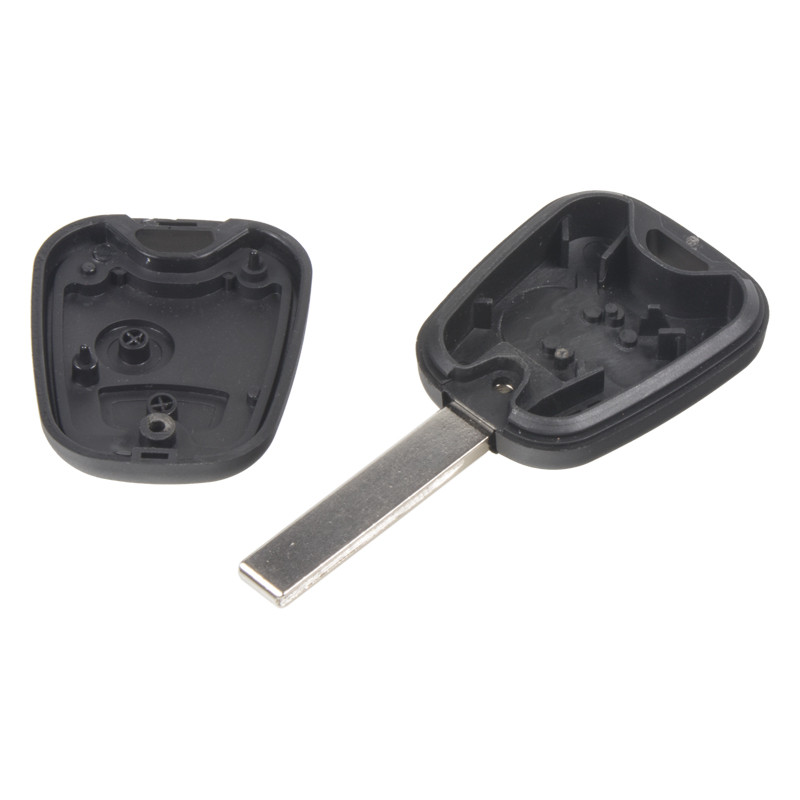 Náhradní obal klíče pro vozy koncernu Peugeot s 2-tlačítkovým ovladačem (bez elektroniky a čipu imobilizéru). Planžeta klíče HU83 (s drážkou na boku). Do klíče je nutno vložit z původního klíče elektroniku dálkového ovládání a čip imobilizéru (transpondér), planžetu klíče je třeba nechat vyfrézovat podle tvaru originálního klíče.