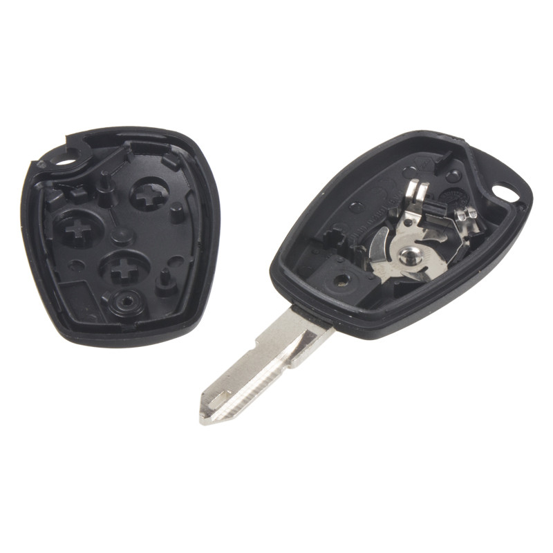 Náhradní obal klíče pro vozy Renault s 3-tlačítkovým ovladačem (bez elektroniky a čipu imobilizéru). Do klíče je nutno vložit z původního klíče elektroniku dálkového ovládání a čip imobilizéru (transpondér), planžetu klíče je třeba nechat vyfrézovat podle tvaru originálního klíče.