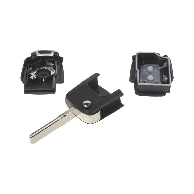 Náhradní obal vystřelovacího klíče pro vozy koncernu Peugeot s 2-tlačítkovým ovladačem (bez elektroniky a čipu imobilizéru). Planžeta klíče VA2, baterie je umístěna samostatně v obalu klíče. Do klíče je nutno vložit z původního klíče elektroniku dálkového ovládání a čip imobilizéru (transpondér), planžetu klíče je třeba nechat vyfrézovat podle tvaru originálního klíče.