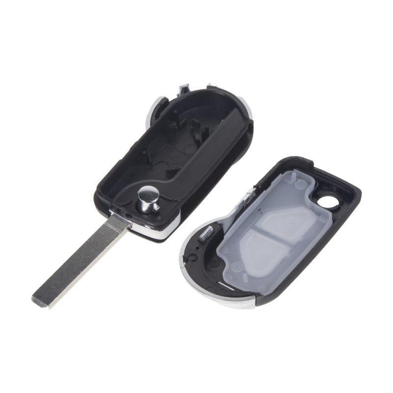 Náhradní obal vystřelovacího klíče pro vozy Citroën/Peugeot s 2-tlačítkovým nevystřelovacím klíčem (bez elektroniky a čipu imobilizéru). Slouží pro změnu ze staršího nevystřelovacího klíče na novější verzi s vystřelovacím klíčem. Do vystřelovacího klíče je nutno vložit z původního klíče elektroniku dálkového ovládání a čip imobilizéru (transpondér), planžetu klíče je třeba nechat vyfrézovat podle tvaru originálního klíče. Typ planžety: NE73.