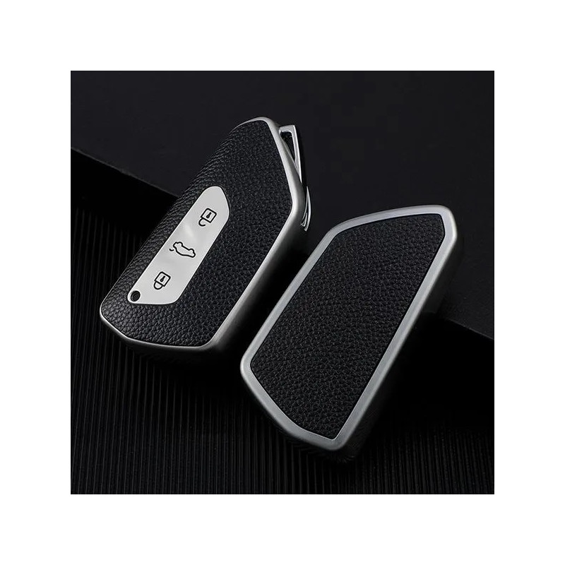 TPU obal pro autoklíč Škoda, VW, Seat, stříbrný se vzorem kůže.