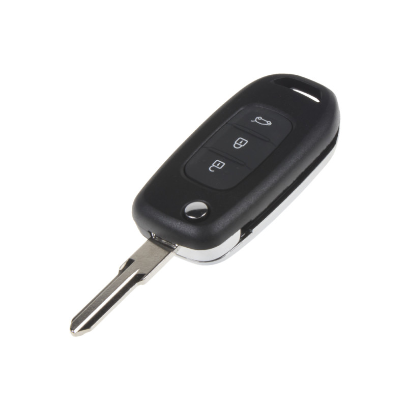 Náhradní klíč s dálkovým ovladačem pro vozy Renault. Součástí klíče není planžeta klíče, dálkové ovládání centrálního zamykání se dvěmi tlačítky (čip PCF7961).