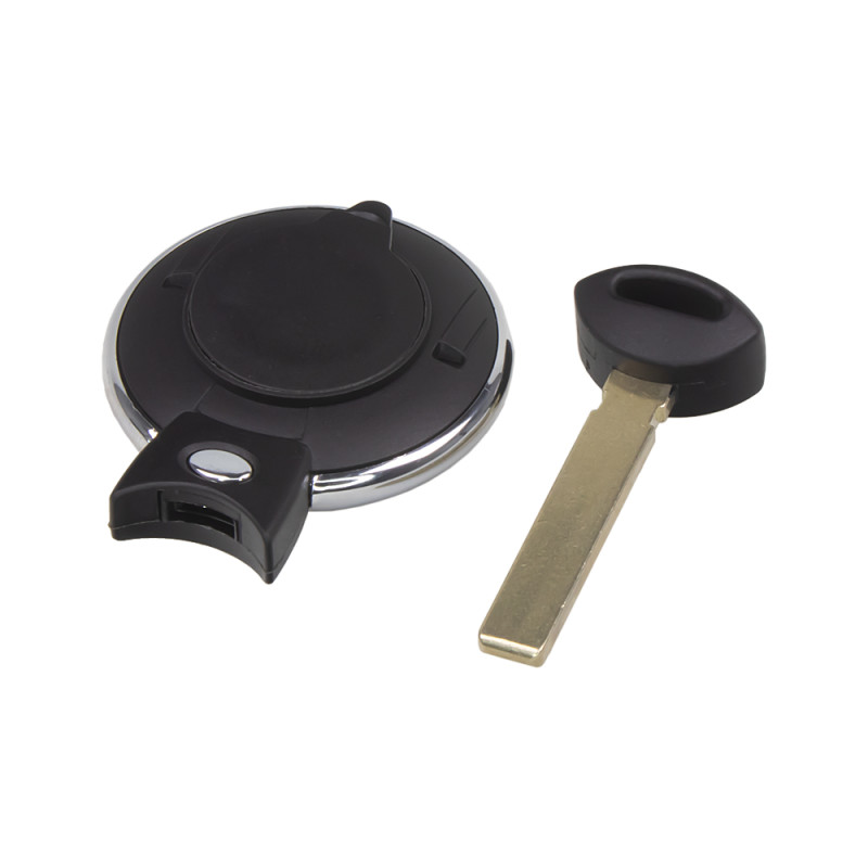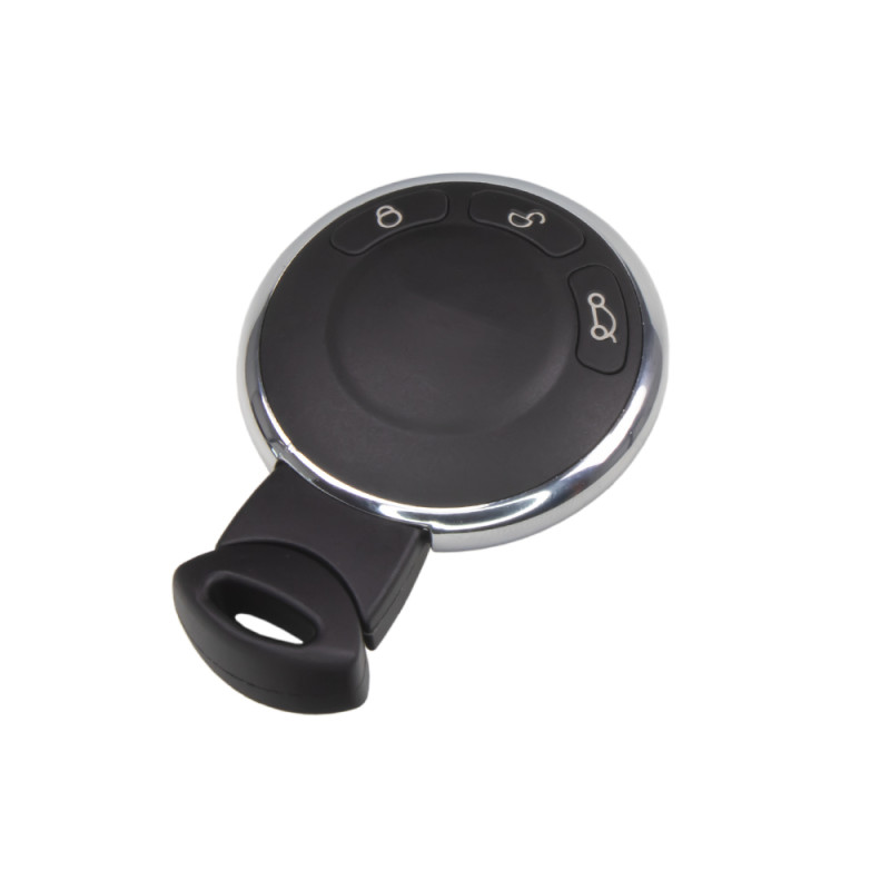 Náhradní autoklíč s dálkovým ovladačem pro vozy BMW - Mini. Součástí klíče je planžeta, dálkové ovládání centrálního zamykání se třemi tlačítky a čip pro imobilizér. Náhrada originálního ovladače 66123456367.