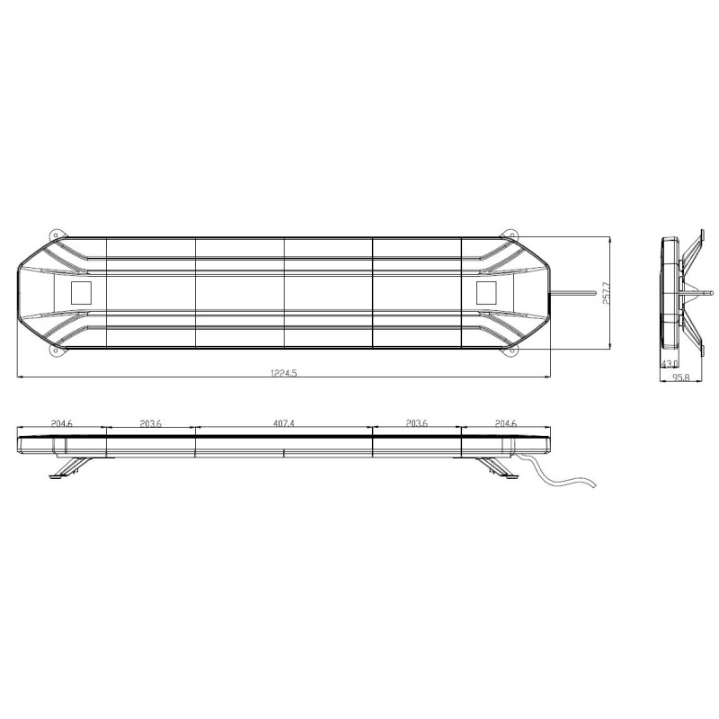 • rozměry: 1224 x 257 x 43 mm (výška včetně držáku 95,8 mm)