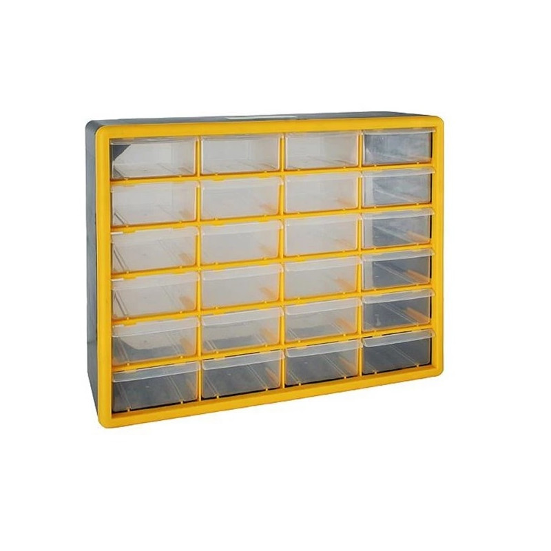 ► Organizér na stenu Strend Pro by nemal chýbať vo výbave vašej dielne. Zabezpečuje praktické a prehľadné uskladnenie skrutiek, matíc, podložiek a podobného materiálu vďaka 44 zásuvkám. Je vyrobený z PVC a maximálna nosnosť je 28 kg. Jeho rozmery sú 50x16x39 cm.