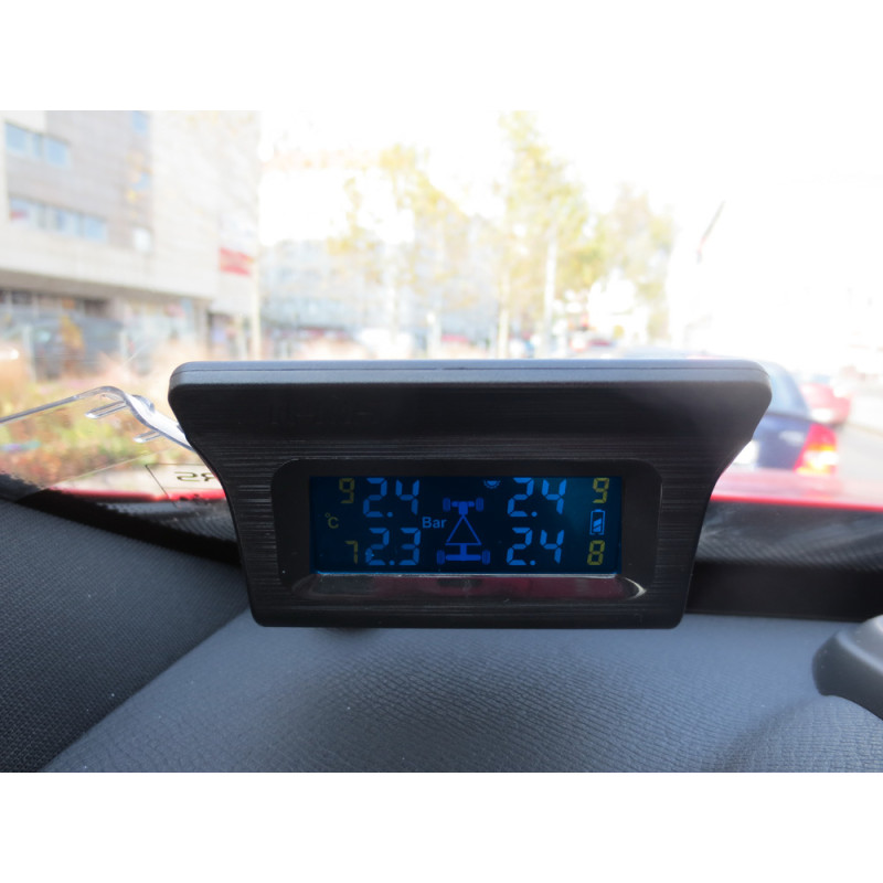 Systém pro kontrolu tlaku a teploty v pneumatikách s displejem a solárním napájením. Čidla jsou určena pro vnější montáž, proto montáž zvládnete svépomocí (pouze se vymění čepička ventilku). Montáž displeje se provádí nalepením magnetického držáku displeje na sklo, následně vložení displeje do držáku.