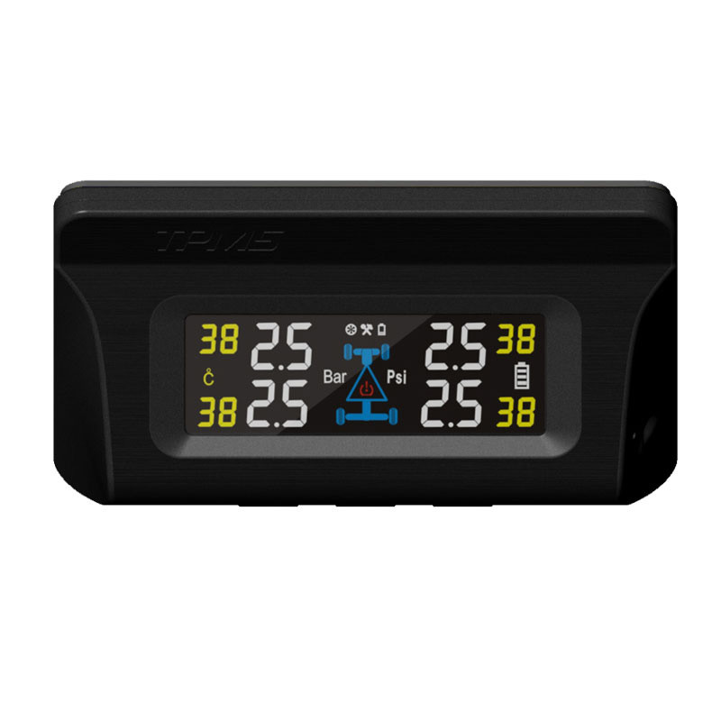 Systém pro kontrolu tlaku a teploty v pneumatikách s displejem a solárním napájením. Čidla jsou určena pro vnější montáž, proto montáž zvládnete svépomocí (pouze se vymění čepička ventilku).