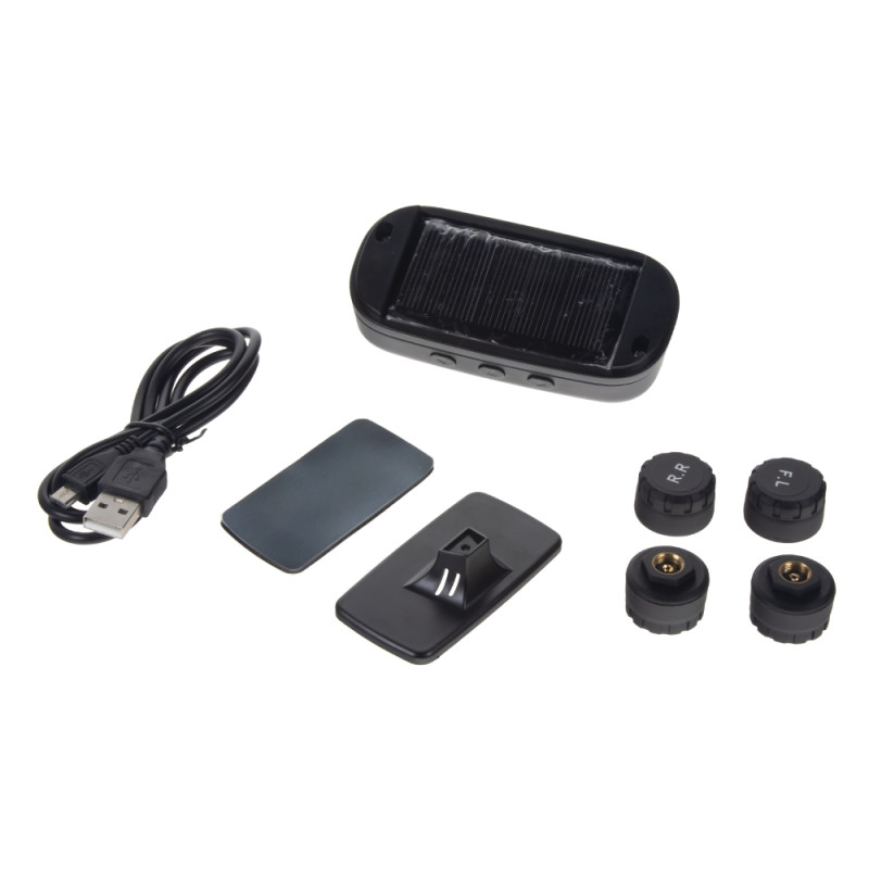 Systém pro kontrolu tlaku a teploty v pneumatikách s displejem a solárním napájením. Čidla jsou určena pro vnější montáž, proto montáž zvládnete svépomocí (pouze se vymění čepička ventilku). Montáž displeje se provádí nalepením magnetického držáku displeje na sklo, následně vložení displeje do držáku.