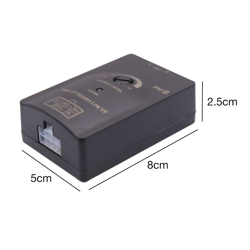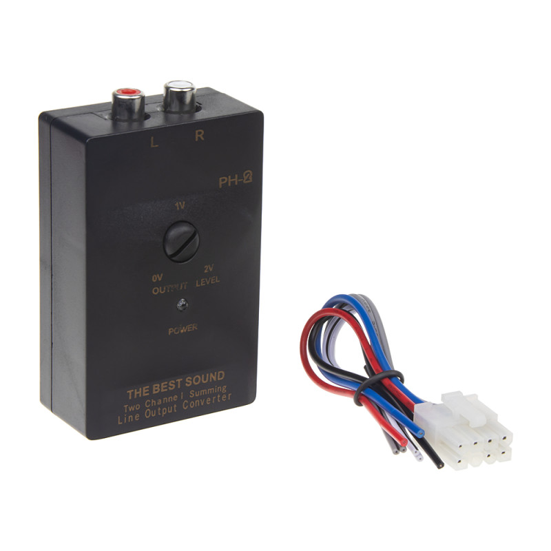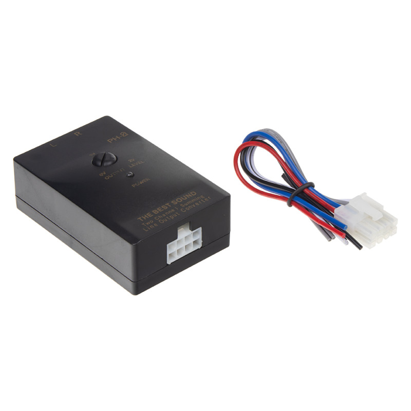 Dvoukanálový adaptér repro/CINCH samice s nastavitelným poměrem útlumu. Používá se pro připojení externího zesilovače nebo aktivních reproduktorů k autorádiím, které nemají linkové výstupy.