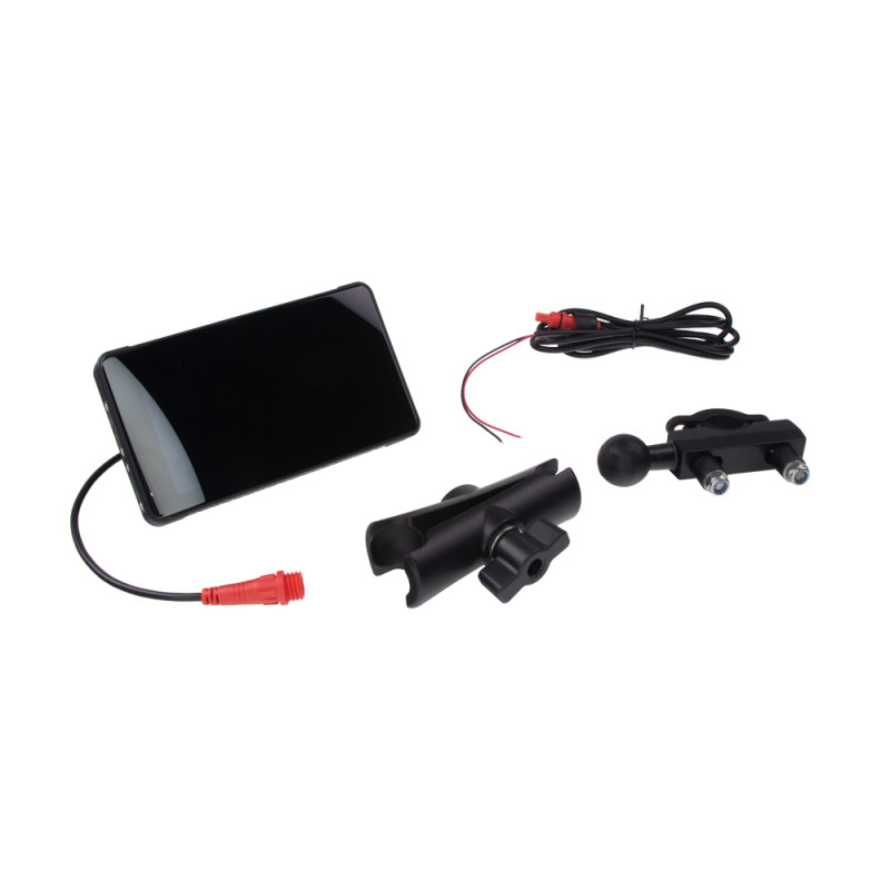 Obsah balení: Monitor + kloub, držák pro pevnou montáž na řídítka s kloubem, napájecí kabel pro pevnou montáž.
