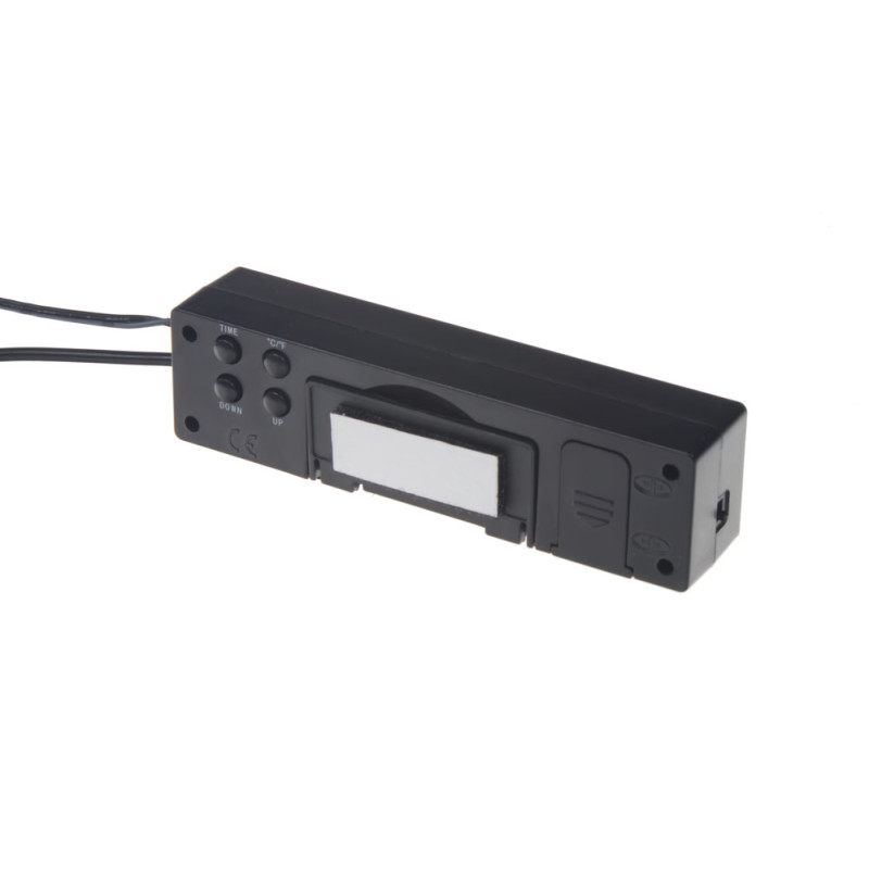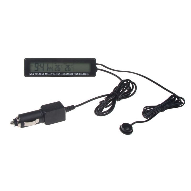 Digitální teploměr pro zobrazování vnitřní a vnější teploty, hodiny a palubní napětí / voltmetr s modrým nebo oranžovým podsvětlením.