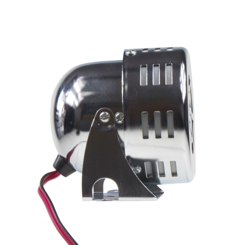 Vzduchová siréna 12V. Jedná se o velmi hlasitou sirénu s intenzitou 110 dB! Tato siréna je poháněna motorem a poskytuje autentický a velmi hlasitý zvuk. Siréna má odolnou kovovou konstrukcí s chromovaným povrchem a má velmi malé rozměry, ideální pro montáž v těsných prostorech. Určeno pro použití pro osobní automobily, nákladní automobily, SUV, dodávky, čluny, traktory, motocykly a čtyřkolky s 12V napájecím systémem!
