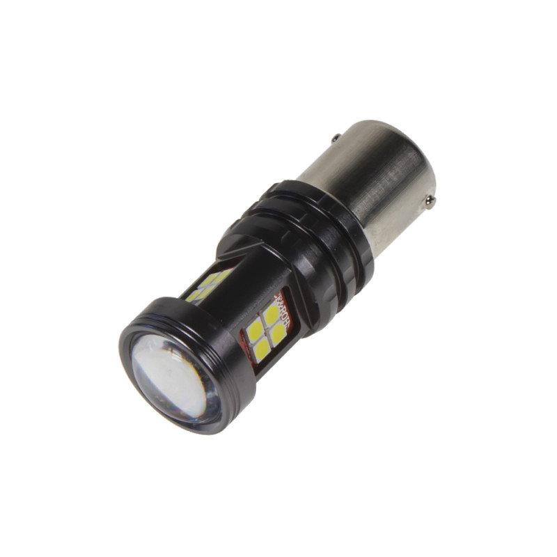 Nová generace LED autožárovek s paticí BA15S (P21W), bílá, 21x super svítivý LED čip 3030SMD + rozptylová krycí čočka.
