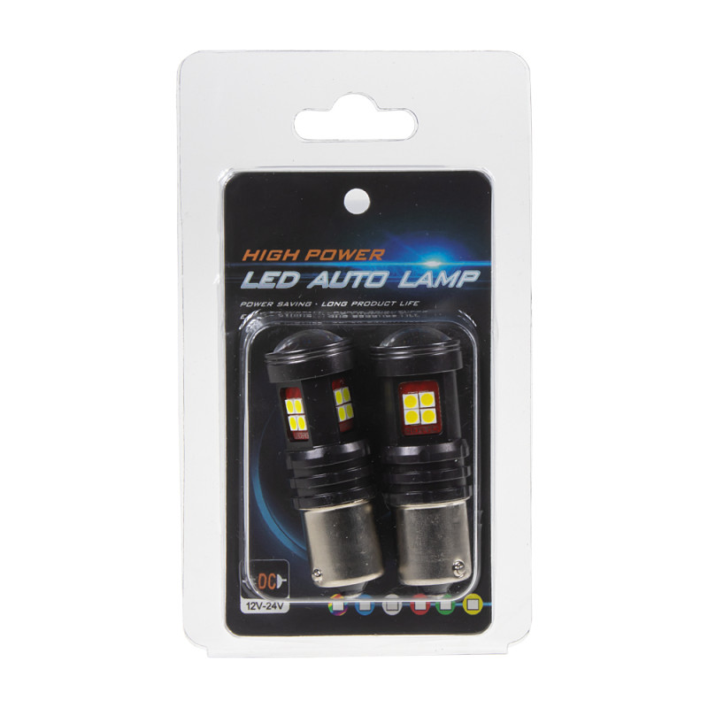 Nová generace LED autožárovek s paticí BA15S, bílá, 12 x super svítivý LED čip 5 W + rozptylová krycí čočka.