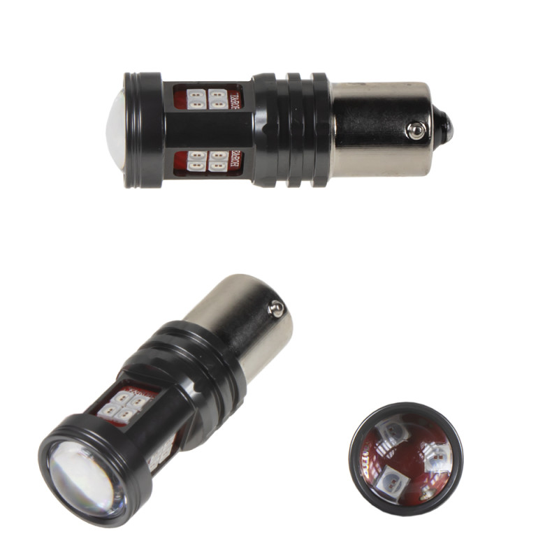 Nová generace LED autožárovek s paticí BA15S, oranžová, 30x LED čip 3030SMD. Díky speciální vestavěné elektronice simuluje stejný odběr jako klasická žárovka a nehlásí chybu ve vozidlech se systémem hlídání prasklých žárovek. Určeno do směrových světel (blinkrů), žárovky blikají správnou rychlostí.