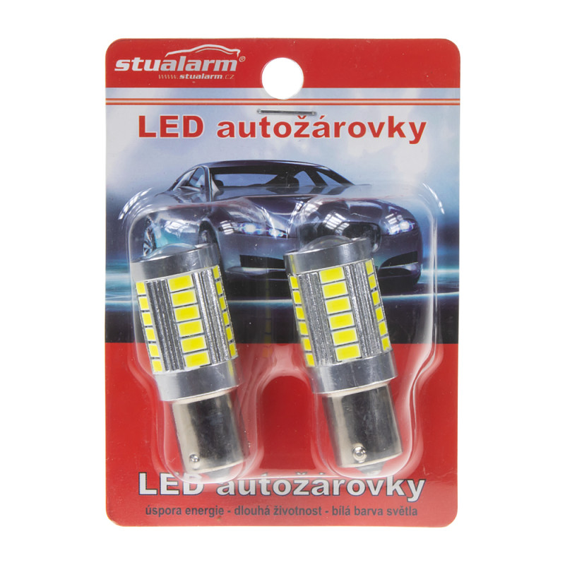 Náhradní LED žárovka s paticí BAU15S, bílá, 33x super svítivá SMD LED 5730 + krycí čočka.