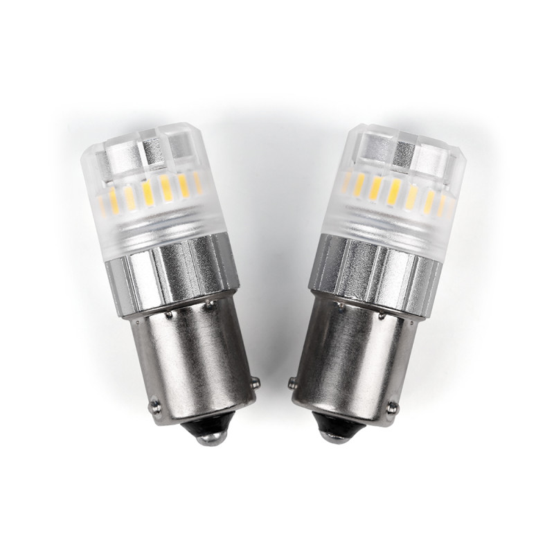 Nová generace LED autožárovek s paticí BAU15S, oranžová, 30x LED čip 3030SMD. Díky speciální vestavěné elektronice simuluje stejný odběr jako klasická žárovka a nehlásí chybu ve vozidlech se systémem hlídání prasklých žárovek. Určeno do směrových světel (blinkrů), žárovky blikají správnou rychlostí.
