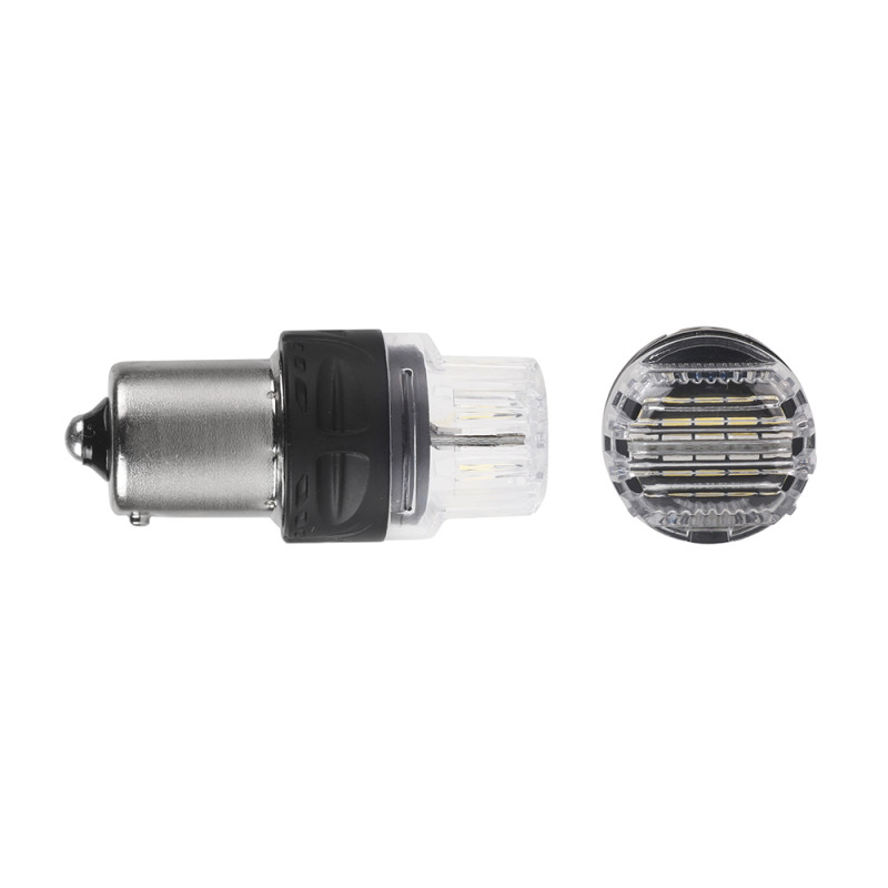 Nová generace LED autožárovek s paticí BAU15S, oranžová, 30x LED čip 3030SMD. Díky speciální vestavěné elektronice simuluje stejný odběr jako klasická žárovka a nehlásí chybu ve vozidlech se systémem hlídání prasklých žárovek. Určeno do směrových světel (blinkrů), žárovky blikají správnou rychlostí.