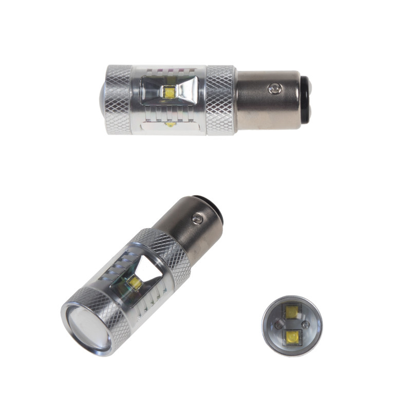 Nová generace LED autožárovek s paticí BAY15D, bílá, 6x super svítivý LED čip CREE XBD 5W + rozptylová krycí čočka.