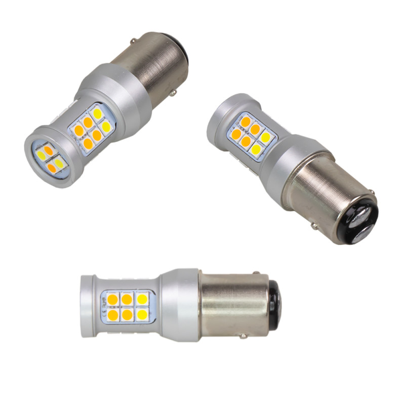 Náhradní LED žárovka s paticí BAY15D (dvouvlákno), dvoubarevná (bílá/oranžová), 22 x super svítivá SMD LED 5630.