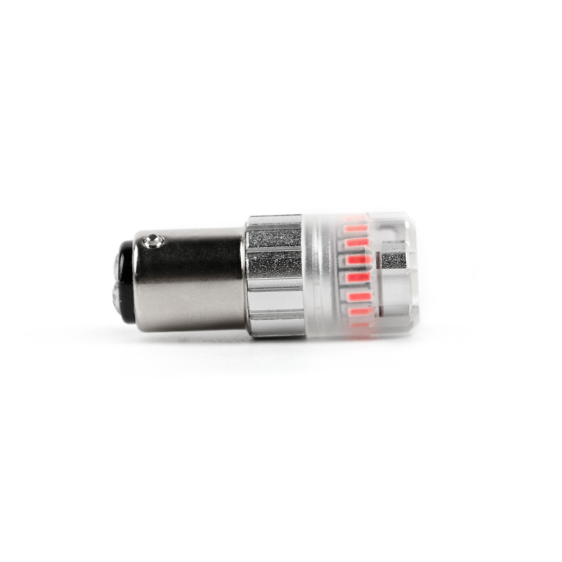 Nová generace LED autožárovek s paticí BAY15D, oranžová, 40x LED čip 3030SMD. Díky speciální vestavěné elektronice simuluje stejný odběr jako klasická žárovka a nehlásí chybu ve vozidlech se systémem hlídání prasklých žárovek. Určeno do směrových světel (blinkrů), žárovky blikají správnou rychlostí.