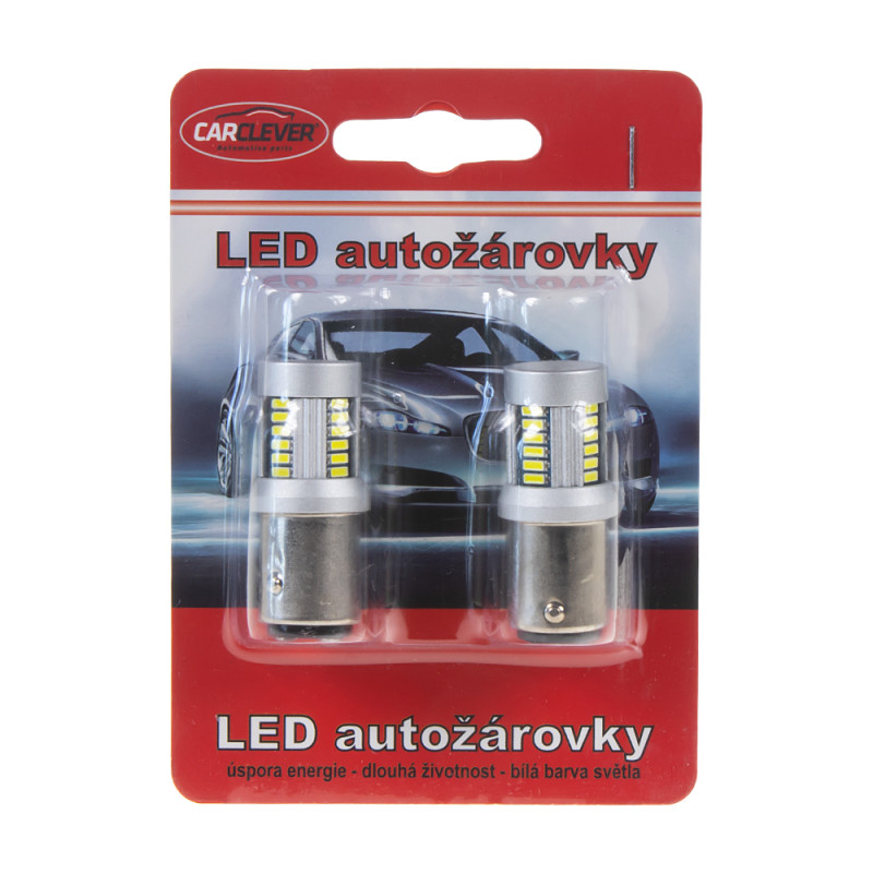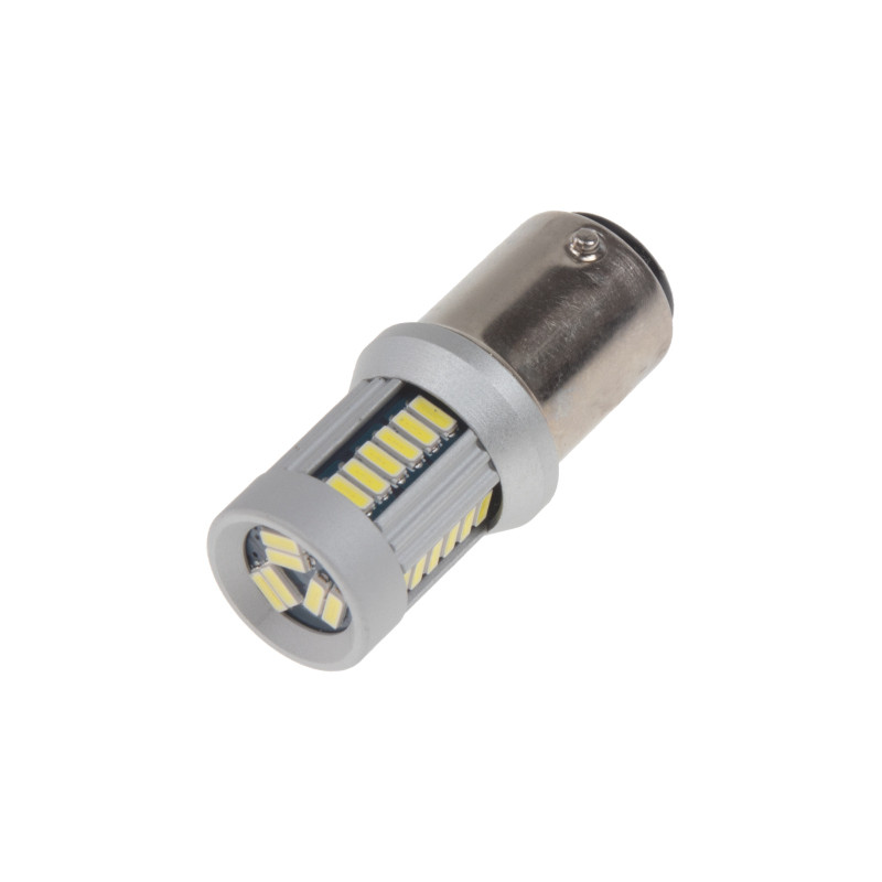 Náhradní LED žárovka s paticí BAZ15D (dvouvlákno), bílá, 30x vysocesvítivé LED diody 4014SMD. Nehlásí závady řídící jednotky na žárovce u nových vozidel se systémem kontroly praské žárovky. Např. u VW, Audi, Škoda, Seat, BMW, Volvo, Mercedes, Porsche, Mini.