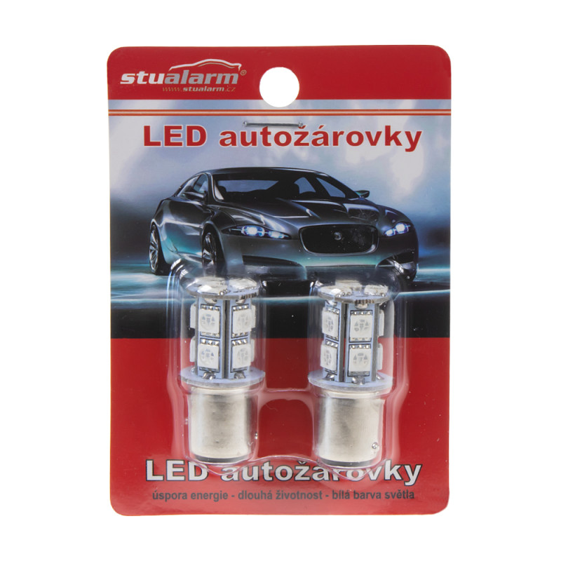 Náhradní LED žárovka s paticí BAZ15D (dvouvlákno), bílá, 30x vysocesvítivé LED diody 4014SMD. Nehlásí závady řídící jednotky na žárovce u nových vozidel se systémem kontroly praské žárovky. Např. u VW, Audi, Škoda, Seat, BMW, Volvo, Mercedes, Porsche, Mini.