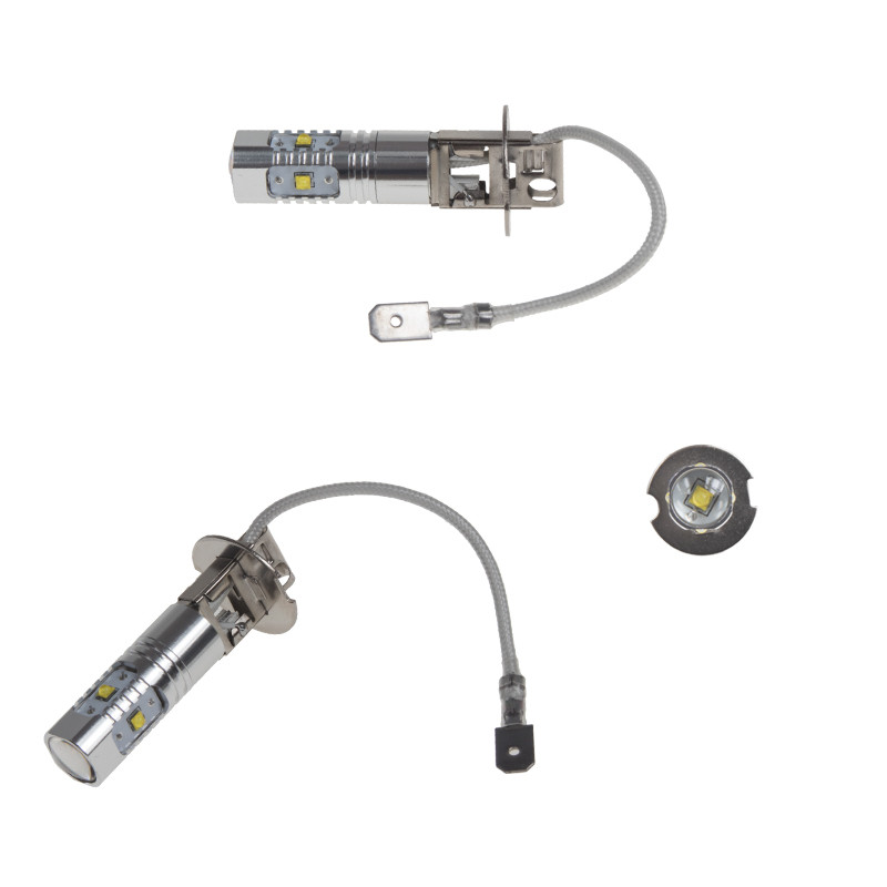 Nová generace LED autožárovek s paticí H3, bílá, 5x super svítivý LED čip CREE XBD 5 W + rozptylová krycí čočka.