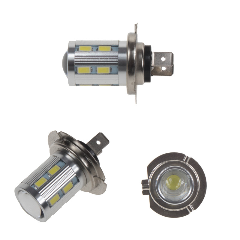 Nová generace supersvítivých LED autožárovek s paticí H7 - bílá s mini projektorem, který vytváří efekt silného světla stejně jako u originálních projektorů s čočkami.