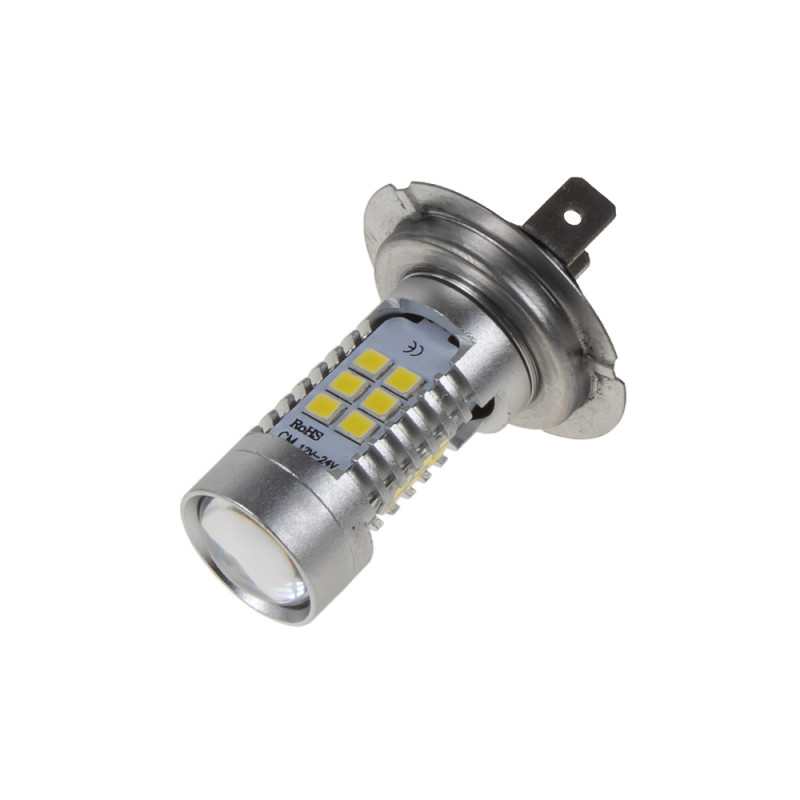 Nová generace LED autožárovek s paticí H7, bílá, 21x super svítivý LED čip 2835SMD + rozptylová krycí čočka.