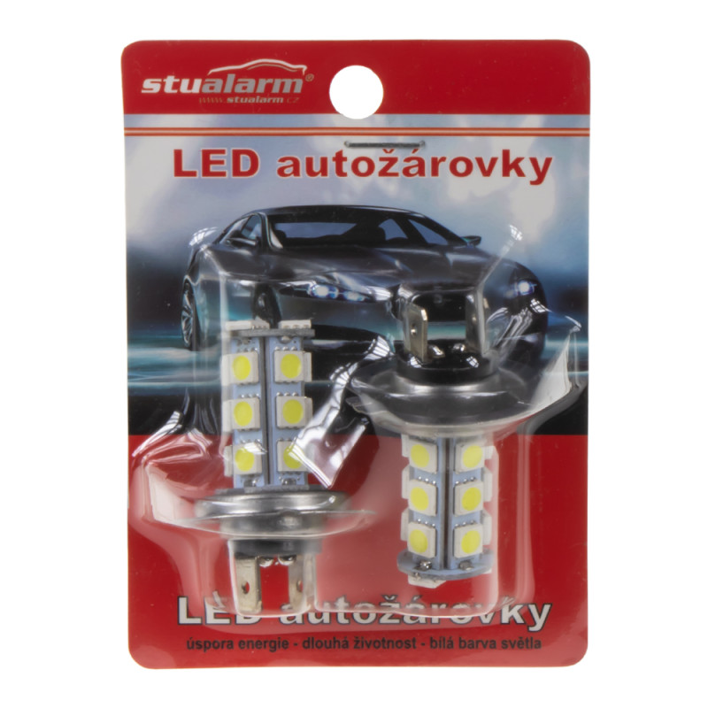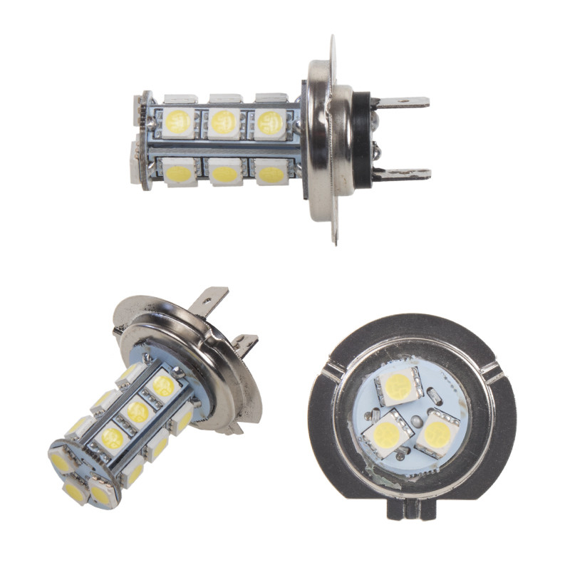 Náhradní LED žárovka s paticí H7 bílá, 16 x tříčipová SMD LED, napájecí napětí 12 V, průměr žárovky (baňky) 25 mm, délka 35mm.