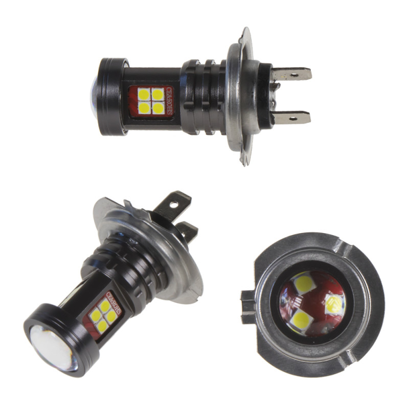 Náhradní LED žárovka s paticí H7 bílá, 16 x tříčipová SMD LED, napájecí napětí 12 V, průměr žárovky (baňky) 25 mm, délka 35mm.