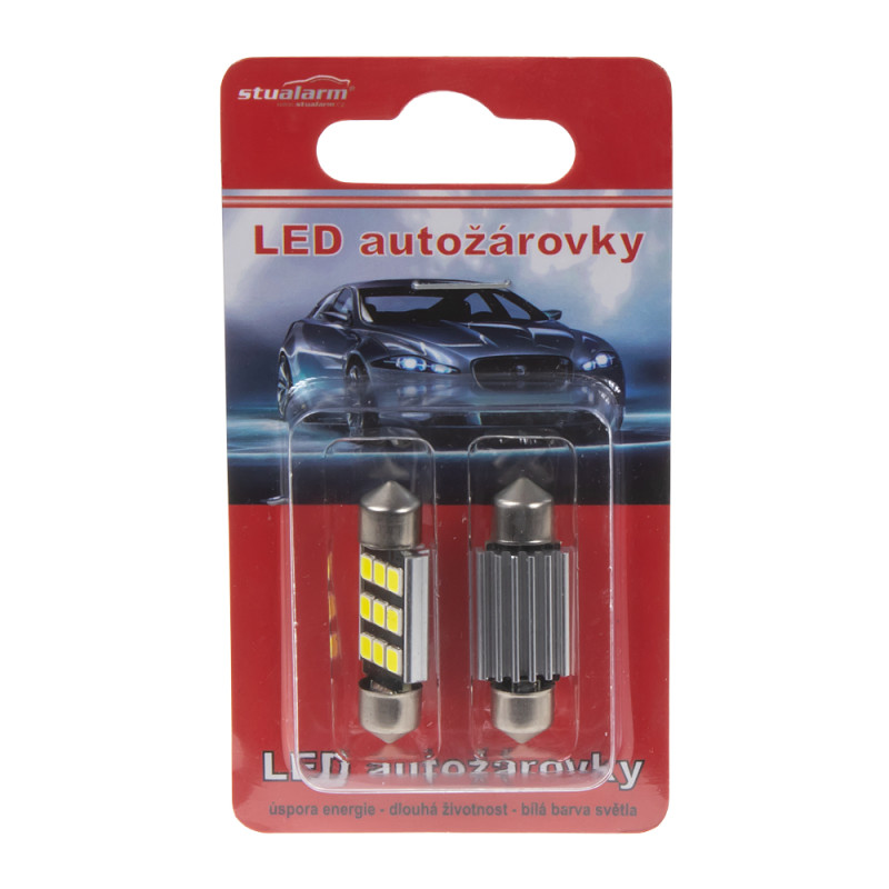 LED žárovka s paticí sufit (42 mm), bílá, s vestavěným rezistorem (nehlásí závady řídící jednotky na žárovce u nových vozidel) a chladičem, 6x vysocesvítivé SMD LED diody 2835SMD.