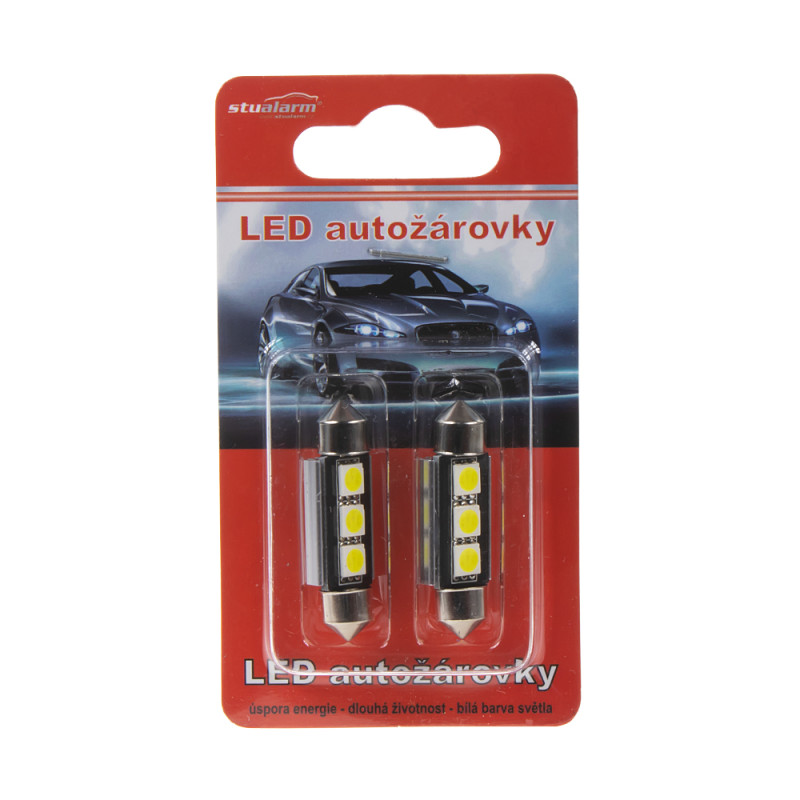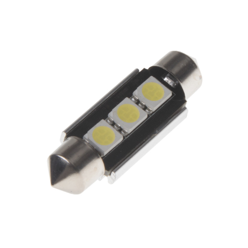 Náhradní LED žárovka s paticí sufit (39 mm), bílá, s vestavěným rezistorem (nehlásí závady řídící jednotky na žárovce u nových vozidel), 3x vysocesvítivé 3-čipové SMD LED diody.