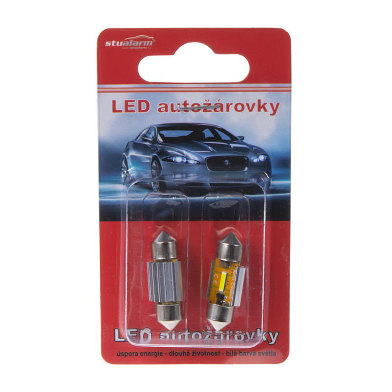 LED žárovka s paticí sufit (41 mm), bílá, s vestavěným rezistorem (nehlásí závady řídící jednotky na žárovce u nových vozidel) a chladičem, 33x SMD LED diody 3014SMD.
