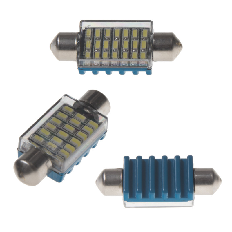 Náhradní LED žárovka s paticí sufit (39 mm), bílá, s vestavěným rezistorem (nehlásí závady řídící jednotky na žárovce u nových vozidel), 3x vysocesvítivé 3-čipové SMD LED diody.