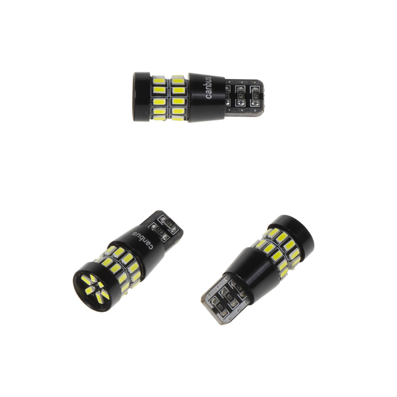 Náhradní LED žárovka s paticí T10, 30 LED s čipy 3014SMD , s vestavěným rezistorem (nehlásí závady řídící jednotky na žárovce u nových vozidel), vhodná do parkovacích světel u novějších vozidel, odpovídá žárovce "celosklo" W5W. Svítivost LED diody je podstatně větší než u žárovky 12 V 5 W. Díky teplotě světla 6000 K jsou LED žárovky ideálním doplňkem do reflektorů s xenonovými výbojkami, kde žluté světlo obyčejné žárovky působí rušivě.