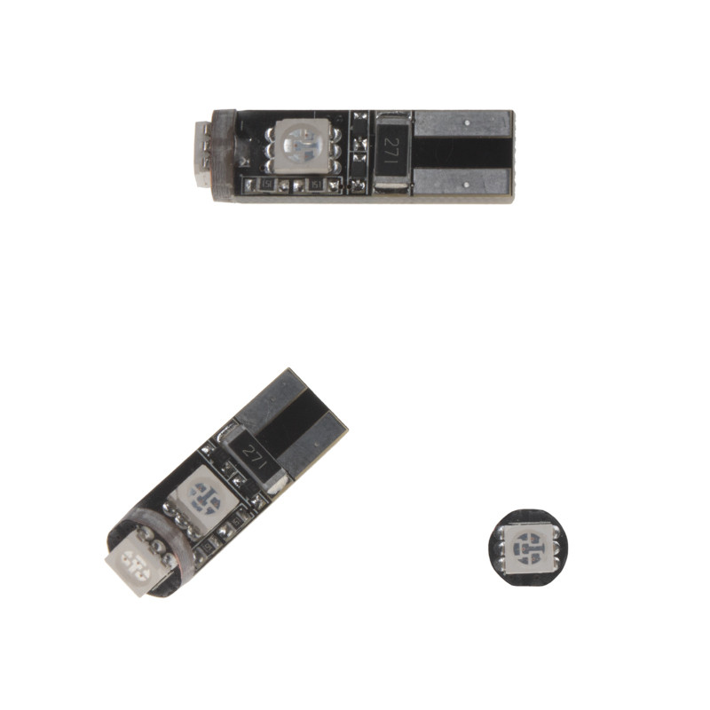 Náhradní LED žárovka s paticí T10, bílá, 5x vysocesvítivé 3-čipové SMD LED diody, vhodná do parkovacích světel u novějších vozidel, odpovídá žárovce "celosklo" W5W. Svítivost LED diody je podstatně větší než u žárovky 12 V 5 W. Díky teplotě světla 8000 K jsou LED žárovky ideálním doplňkem do reflektorů s xenonovými výbojkami, kde žluté světlo obyčejné žárovky působí rušivě.