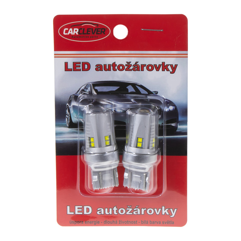 Náhradní LED žárovka s paticí T20 (3156 - W2,5x16d ), bílá, 5 3-čipových SMD LED diod. Tato žárovka se používá především v automobilech dovezených z USA automobilky Dodge, Ford, Chrysler.