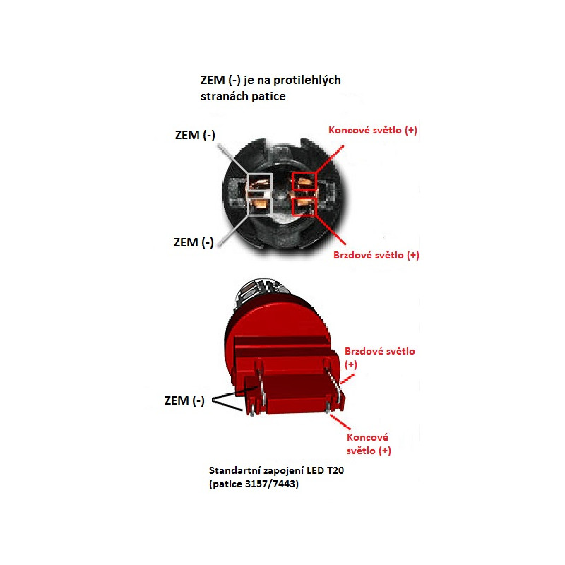 • tato žárovka nemá oproti jiným T20 spojené země, takže ji lze použít i do vozidel s jiným zapojením