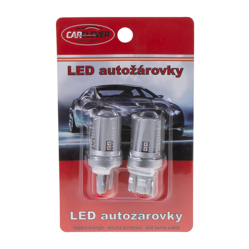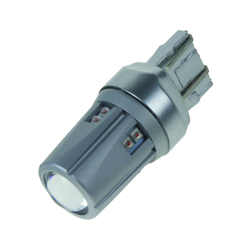 Náhradní červená LED žárovka s paticí T20 (3157 - W2,5x16d ), bílá, s vestavěným rezistorem ( nehlásí závady řídící jednotky na žárovce u nových vozidel), 16x vysocesvítivé 3-čipové SMD LED diody. Tato žárovka se používá především v automobilech dovezených z USA automobilky Dodge, Ford, Chrysler.
