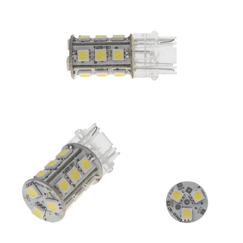 Náhradní LED žárovka s paticí T20 (3156 - W2,5x16d ), bílá, 18 3-čipových SMD LED diod. Tato žárovka se používá především v automobilech dovezených z USA automobilky Dodge, Ford, Chrysler.