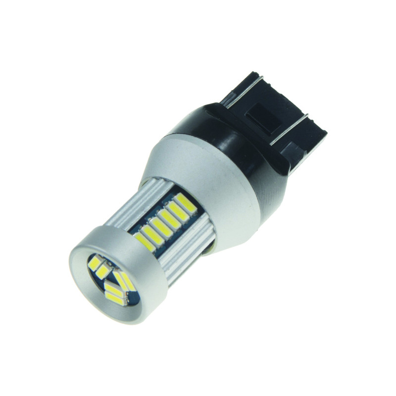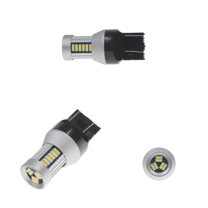 Nová generace LED autožárovek s paticí T20 (3157), oranžová, 32x LED čip 3030SMD. Díky speciální vestavěné elektronice simuluje stejný odběr jako klasická žárovka a nehlásí chybu ve vozidlech se systémem hlídání prasklých žárovek. Určeno do směrových světel (blinkrů), žárovky blikají správnou rychlostí.