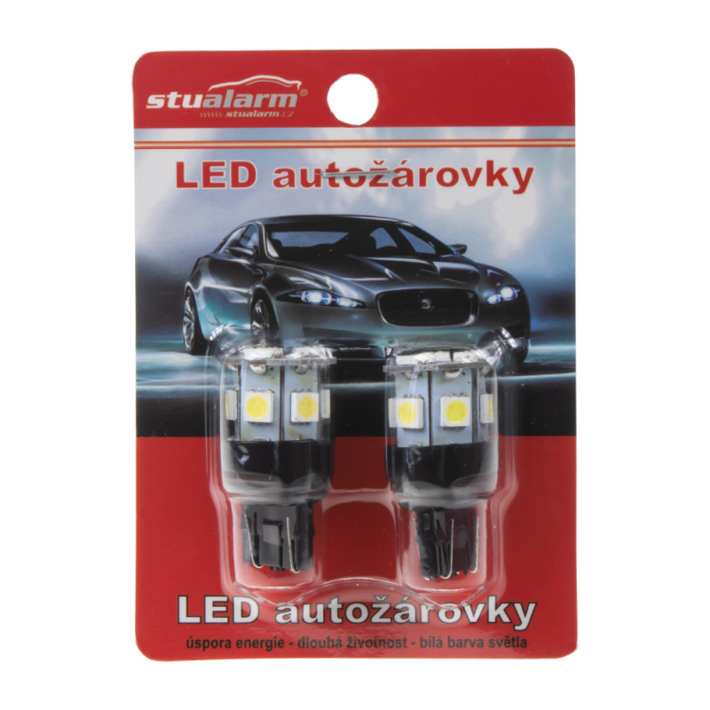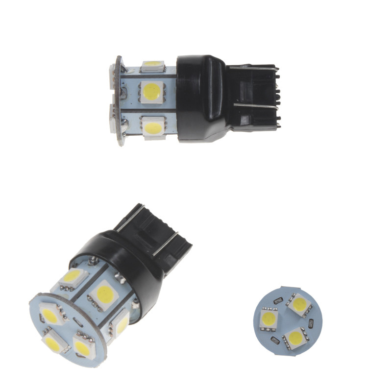 Náhradní LED žárovka s paticí T20 (7443 - W3x16q ), bílá, dvouvlákno, 9 3-čipových SMD LED diod. Tato žárovka se používá především v automobilech dovezených z USA automobilky Dodge, Ford, Chrysler.