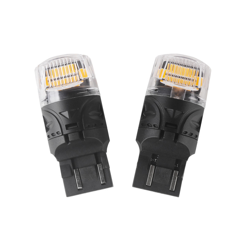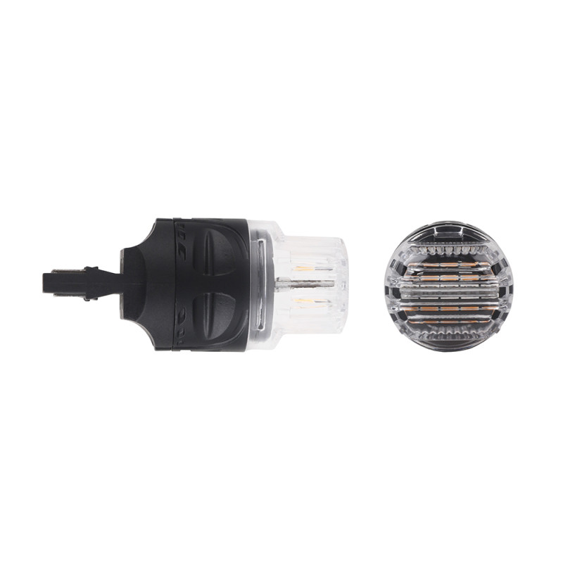 Nová generace LED autožárovek s paticí T20 (7440), oranžová, 30x LED čip 3030SMD. Díky speciální vestavěné elektronice simuluje stejný odběr jako klasická žárovka a nehlásí chybu ve vozidlech se systémem hlídání prasklých žárovek. Určeno do směrových světel (blinkrů), žárovky blikají správnou rychlostí.